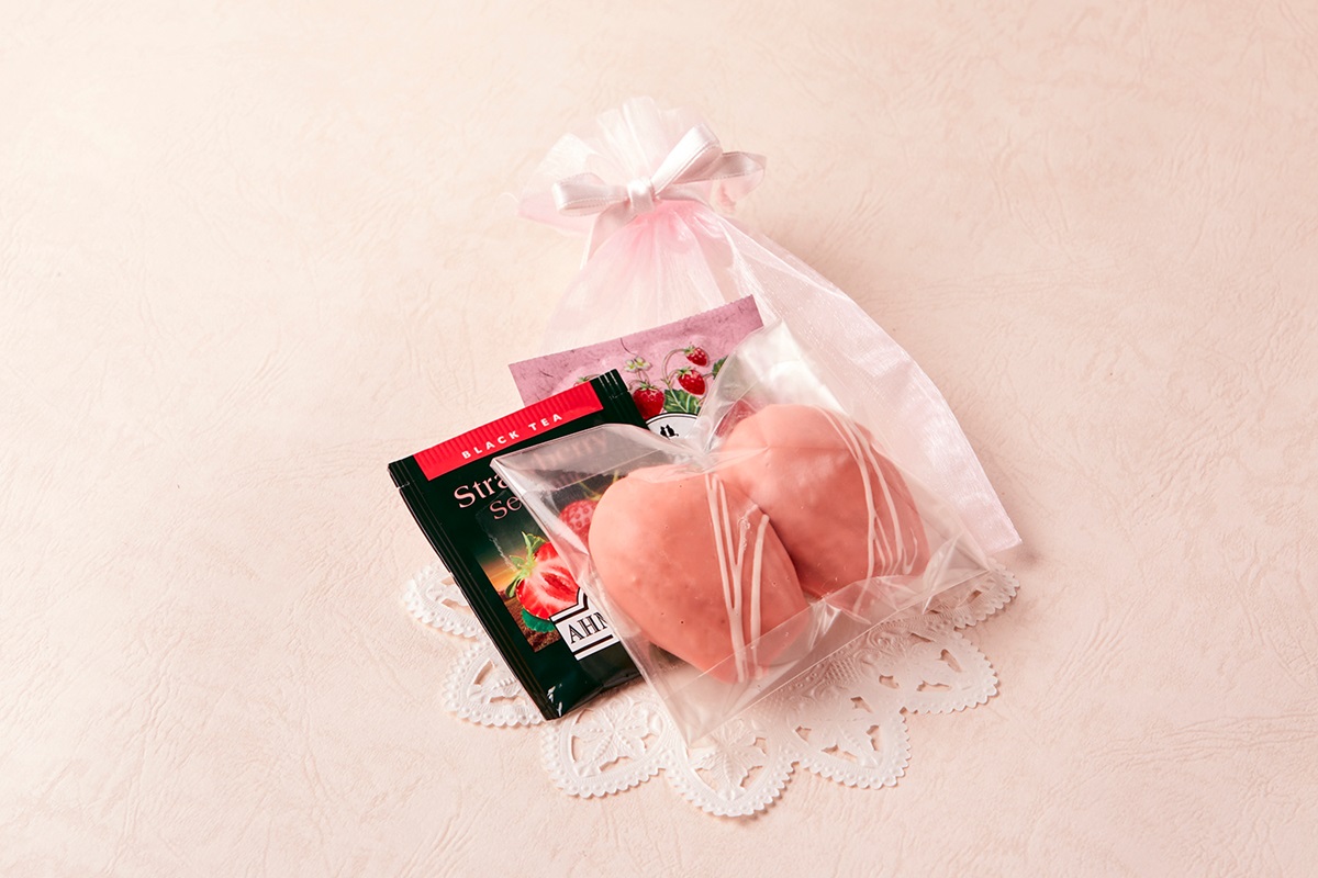 さらに「カフェ」15周年を記念して、「マドレーヌとストロベリーティーのセット」がギブアウェイ(お持ち帰り用プレゼント)で用意されています。 しっとりと焼き上げられたマドレーヌは、イチゴ風味のチョコレートでコーティング。中は甘酸っぱいイチゴジャム入りです。セットのストロベリーティーとともに、優雅なティータイム「ストロベリーコレクション」の余韻に浸りましょう。