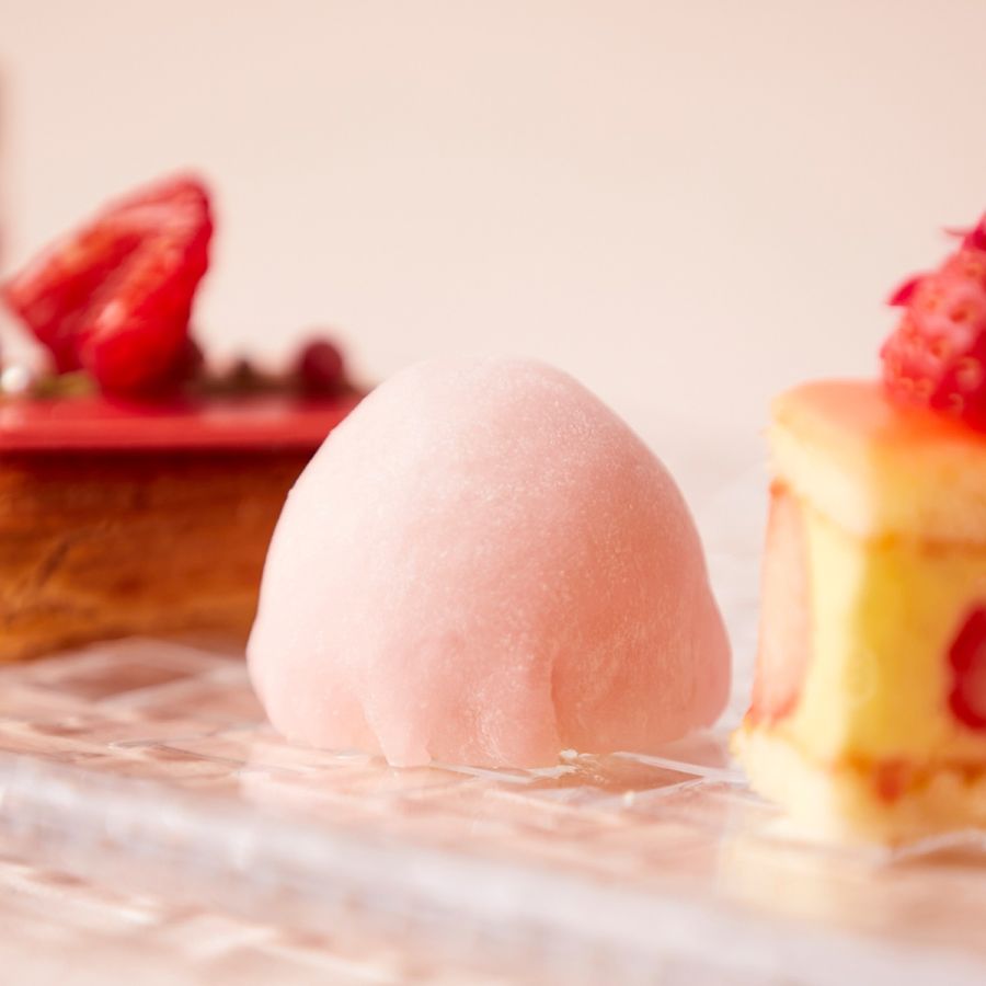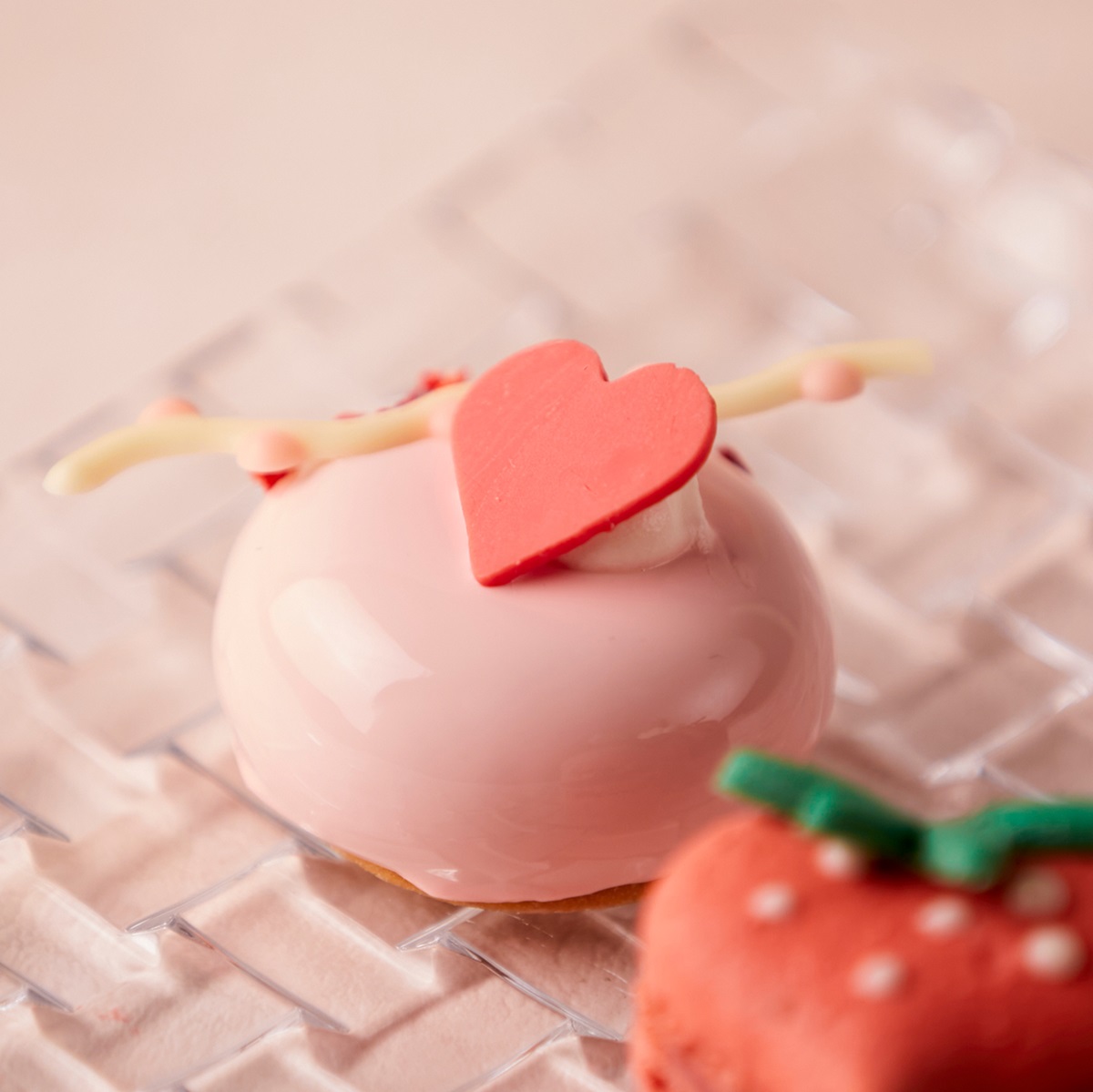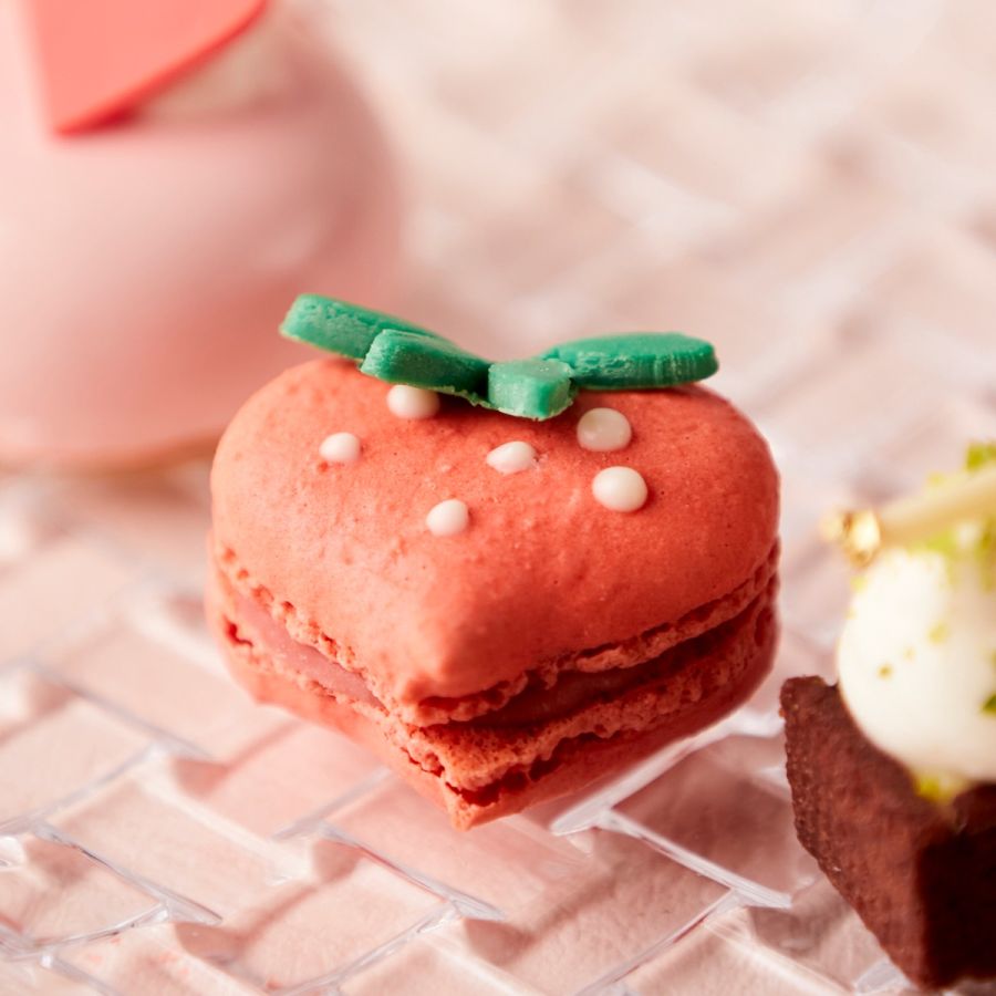 バレンタイン、ホワイトデーシーズンにもぴったりなハート型の「いちごのマカロン」。シェフのスペシャリテでもあるマカロンに今が時期のイチゴを掛け合わせた一品です。しっとりとした食感のマカロンの中には、イチゴ風味のショコラガナッシュをサンド。甘酸っぱいイチゴと濃厚で奥深い甘さのショコラガナッシュのハーモニーを堪能しましょう。