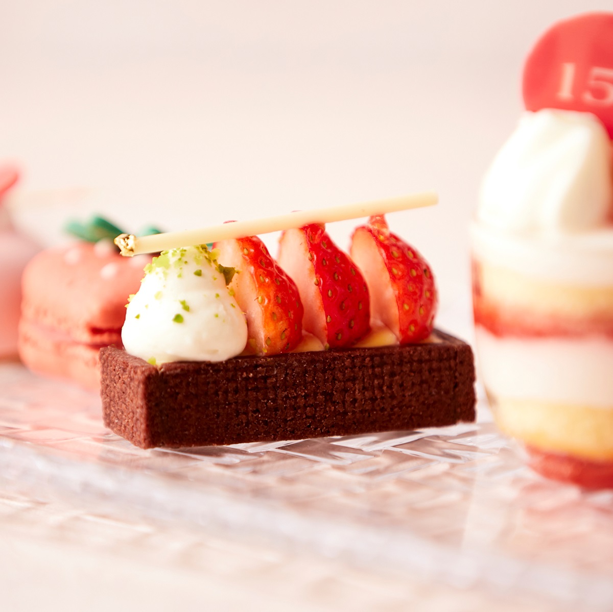 ペストリー・ベーカー料理長、佐藤浩一氏が贈るスイーツは、今が時期のイチゴのおいしさを心ゆくまで堪能できるよう、一つひとつのスイーツにアクセントを加え豪華な味わいに仕上げられています。