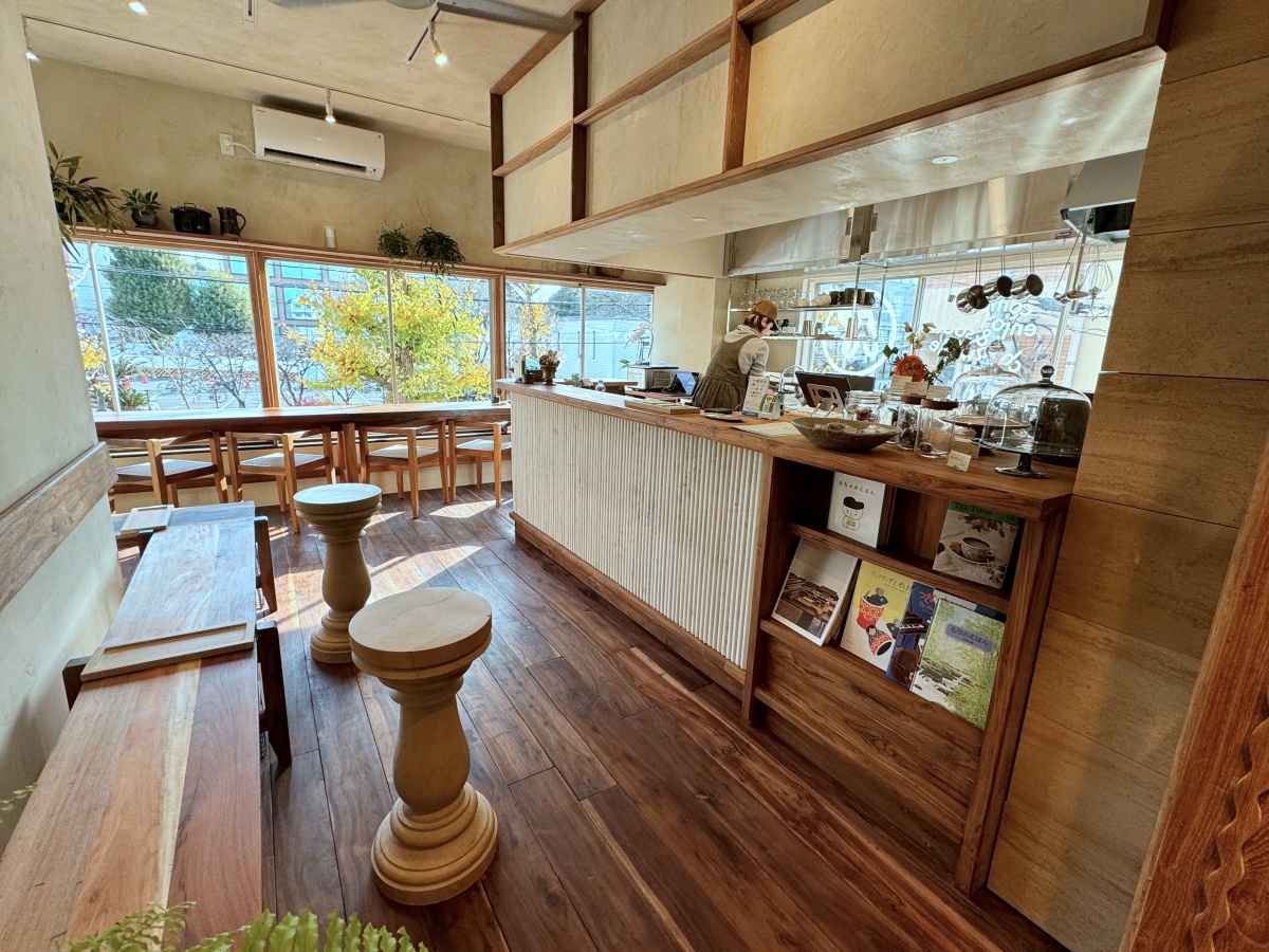 店内はゆったり座れるベンチシートとカウンター6席。晴れた日には、大きな窓からたっぷりと日が差し込みます。