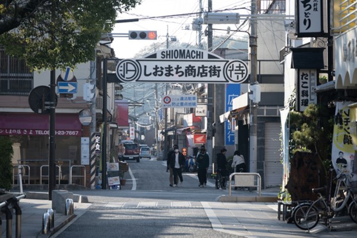 「しおまち商店街コース」は、テイクアウトグルメやみやげを販売するお店が立ち並ぶ、どこか懐かしい雰囲気の漂う商店街を巡るコースです。「しおまち商店街」は生口島瀬戸田港のフェリー乗り場から徒歩すぐの場所にあり、瀬戸田港から耕三寺まで、約600mの参道に約40店舗がずらりと並びます。