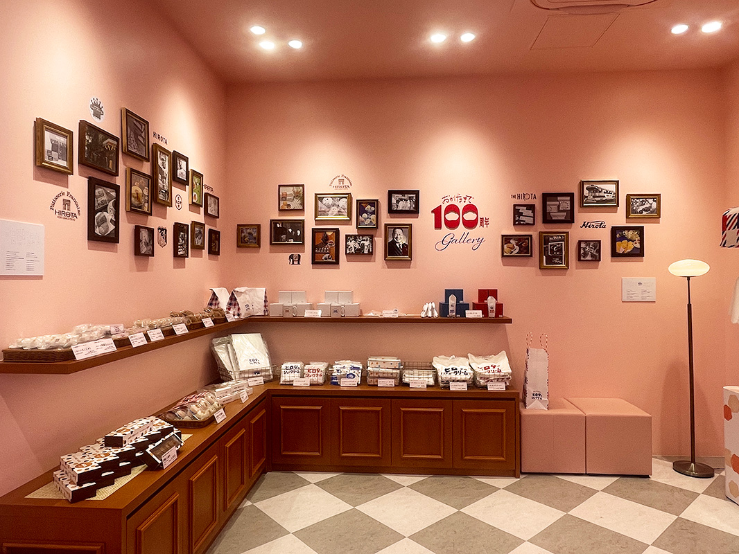 さらに奥に進むと、100年の歴史が詰まったギャラリーが登場。当時の写真&ロゴがすらっと並んでいて、ヒロタが歩んできた軌跡を感じられます。