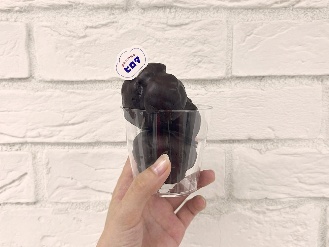 ソフトな食感の甘いミルクチョコレートに、ほんのりサクッとしたシュー生地。カスタードクリームはちょうどいい甘さになっているので、すべてのバランスがよく何個でも食べられそう。