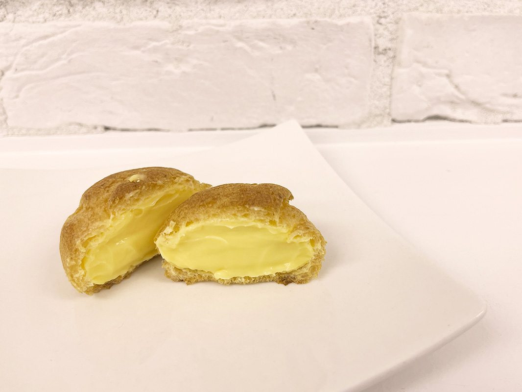 ご覧のとおり、カスタードクリームがぎっしり詰まっています。香ばしさのあるふわふわとしたシュー生地と、コクがあり濃厚なカスタードクリームの相性が抜群。
