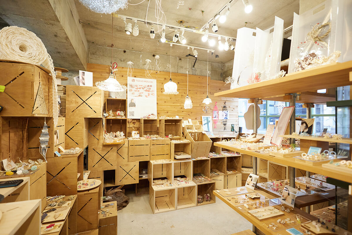「東京水引」のアクセサリーはオンラインショップでも販売されていますが、こちらのギャラリーでは、実際に作品に触れながら選ぶことができます。ワークショップに参加する場合は予約が必要ですが、来店の予約は特にいらないので、ふらりとのぞいてみるのもいいですね。