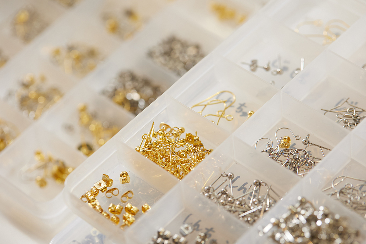 アクセサリーの金具の種類はこんなにあります。ピアスでもイヤリングでも自在。どれを選ぶかでも、だいぶ印象が変わりますよ。