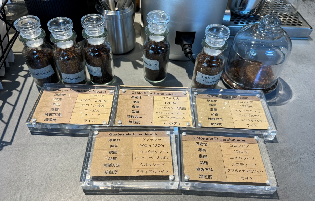取材当日は、オリジナルブレンドをはじめ、産地や風味が異なるシングルオリジンのスペシャリティコーヒー5種類がラインアップ。