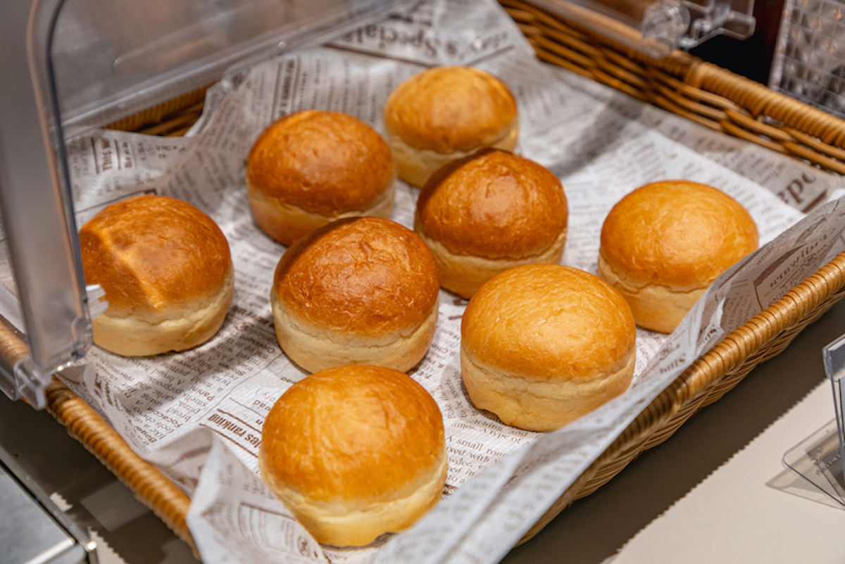 店内キッチンで焼き上げるプチパンも人気。また「小腹が空いた」、「もっとしっかり食べたい」という人は、別料金でピザやポテトなどの軽食をオーダーすることも可能です。