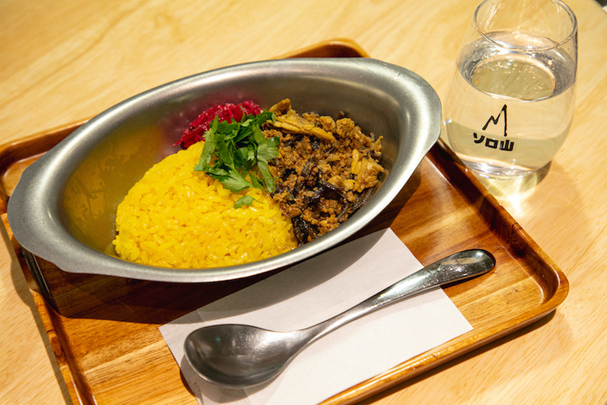 長年、和食店で腕を振るってきた店長が作る「ソロ山名物 クラゲリーライス」別途880円は、お腹を満たしたいときに◎。さまざまなスパイスとアサリのだしが利いていて、キクラゲのコリコリとした食感が後を引くおいしさです。