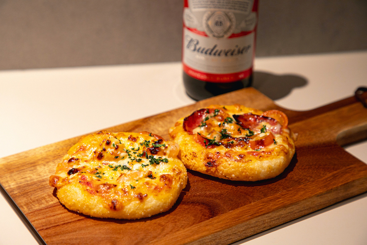 そして仕事を終えた後は、ビール&軽食でひとり乾杯するのも素敵!ちなみに今回オーダーした「自家製ひとくちピザ」別途各495円は生地から手作りしている本格派。サクサク&クリスピーな食感がたまりません。