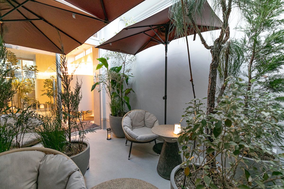 くつろぎ空間はまだまだあります。店内奥には、屋外テラスを設置。狭すぎず広すぎず、ひとりでくつろぐにはちょうどいいサイズ感で、雰囲気はちょっとしたリゾートホテルのよう。仕事に行き詰まったら、開放的なこのテラスで気分転換してもよさそうです。