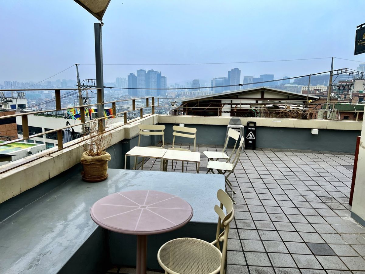 3階はテラス席になっていて、ソウルタワーを望む最高の景色を堪能できます。冬は寒いのであまり座っているお客様がいませんが、暖かい時期にはテラスが気持ちいいはず。