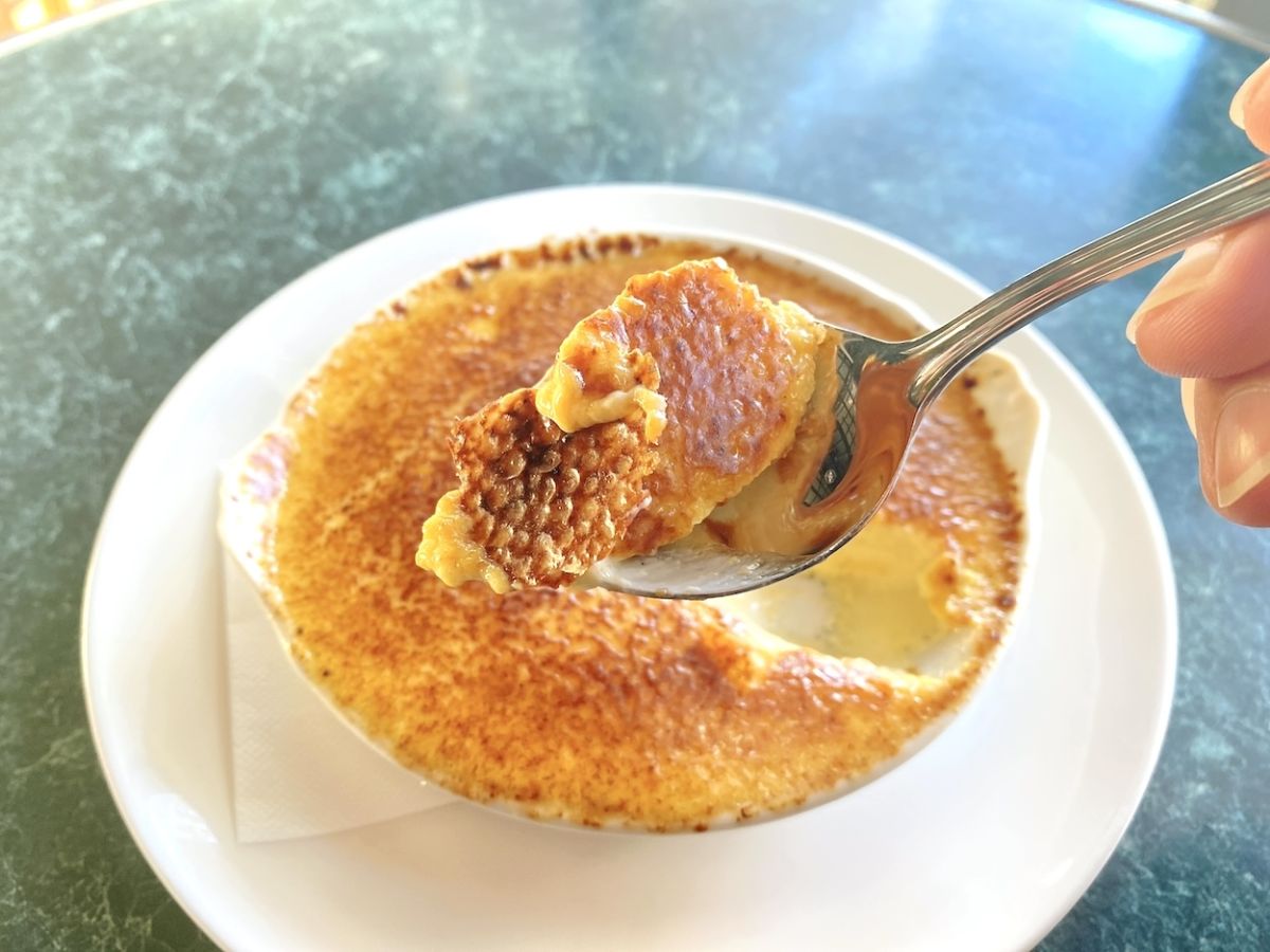 「クレマ・カタラーナ(クレーム・ブリュレ)」はイタリアの定番スイーツでクリームブリュレによく似たもの。注文が入ってから表面をバーナーで炙って提供するため、キャラメリゼされた香ばしい香りとパリパリの食感が楽しめます。