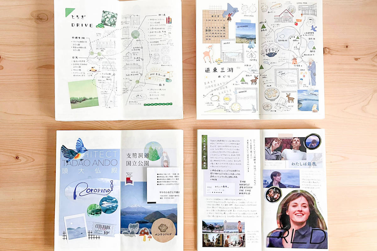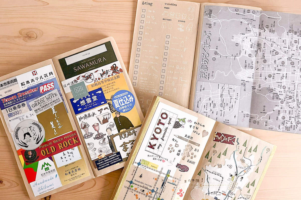 旅の記録といっても、文字やイラストを使った日記風のもの、チケットやパンフレットを切り貼りしたスクラップ帖的なものなどさまざまなパターンがあるので、自分の目的に見合ったノートを楽しみながら選んでみてください♪