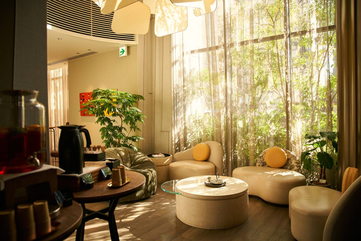 ホテルフロントのすぐ隣には、ロビースペースが。窓から注ぐ木漏れ日に照らされ、これから始まるホテルステイが明るく楽しいものになることを告げているようで、ワクワクしてきます…!フロントのみならずホテル全体が、触れるものはラグジュアリー、それでいて、エネルギッシュな空気感に満ちています。そしてウェルカムドリンクにはライムウォーターやホットコーヒーのほか、冬にはホットチョコレートも!これはうれしいサービスです。