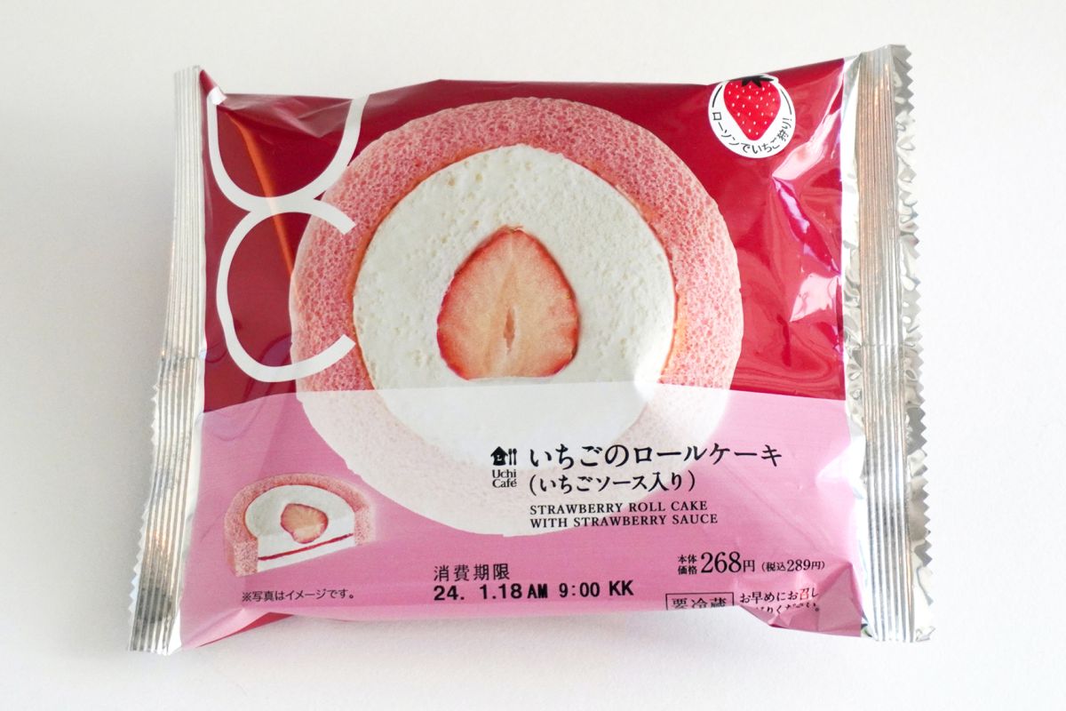 2024年1月16日に新発売のUchiCafé(ウチカフェ)「いちごのロールケーキ(いちごソース入り)」289円。毎年マイナーチェンジされながら進化している、この時期定番のスイーツです。