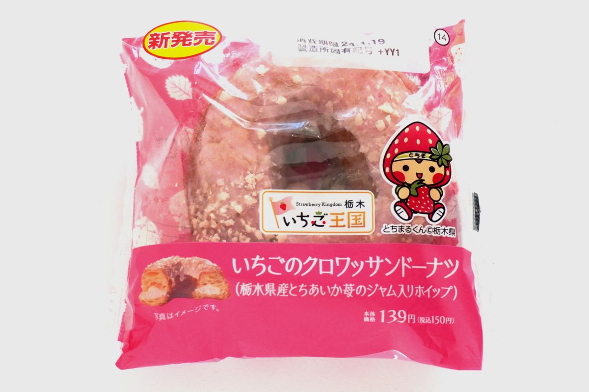 そのいちごバージョンが「いちごのクロワッサンドーナツ(栃木県産とちあいか苺のジャム入りホイップ)」150円。関東地域限定です。