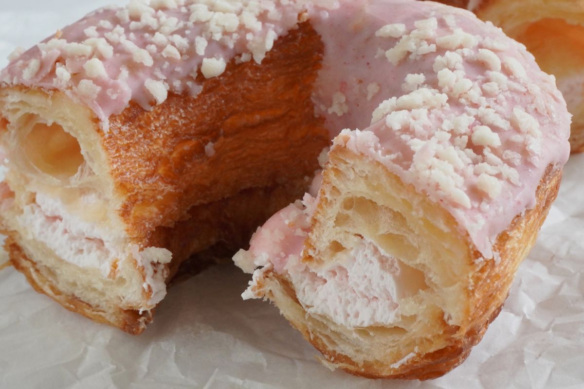 近ごろ流行りのクロワッサンドーナツ。見た目はドーナツなのに、食べるとパイのように層になった生地で、エアリーな食感が楽しめるというハイブリットスイーツの一種です。