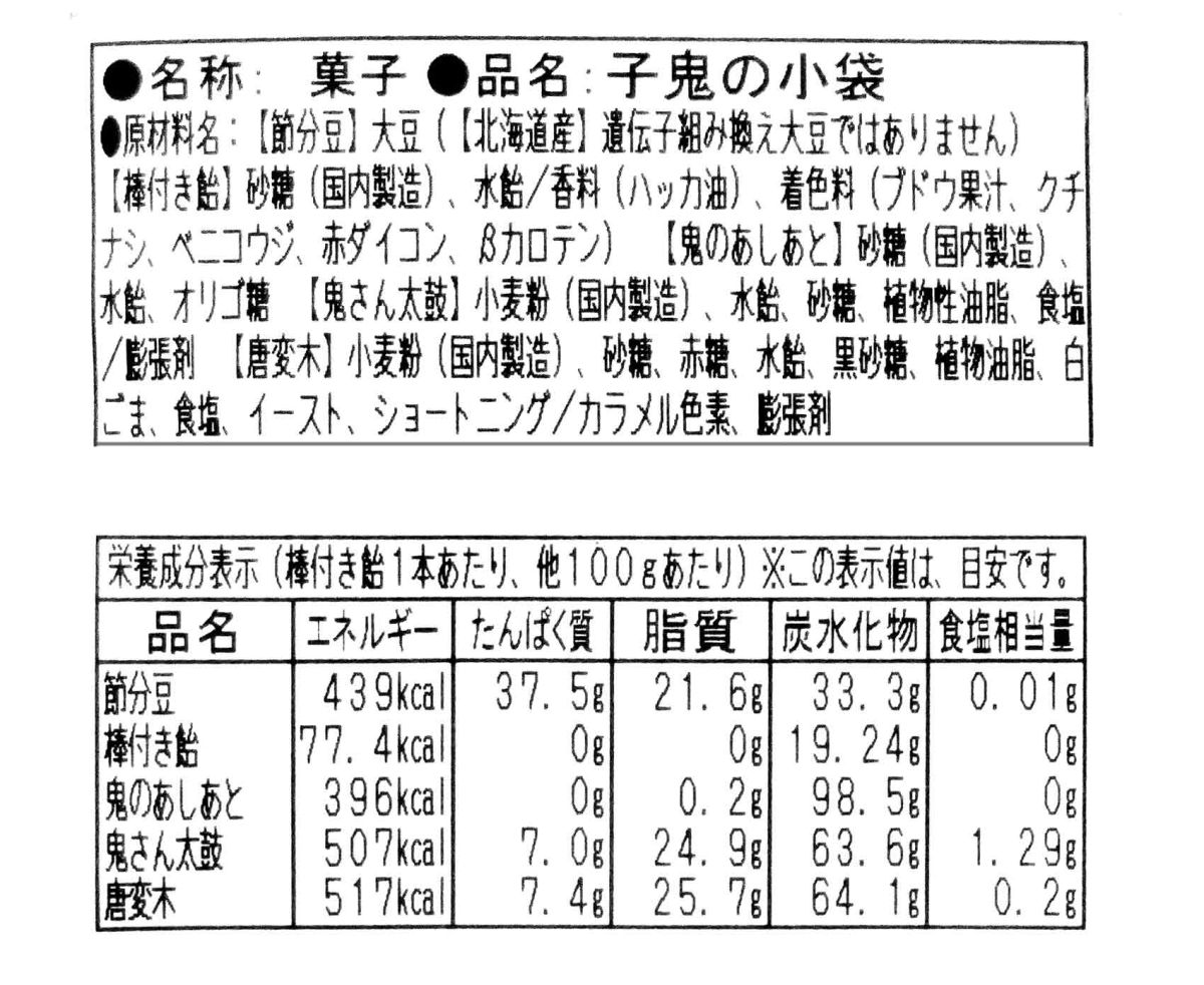 昔なつかしいお菓子の詰め合わせに鬼のお面付き「子鬼の小袋」