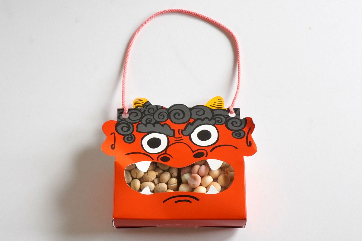 インパクト大の赤鬼の顔に節分豆とぼうろ入り!「鬼あそび(赤)」