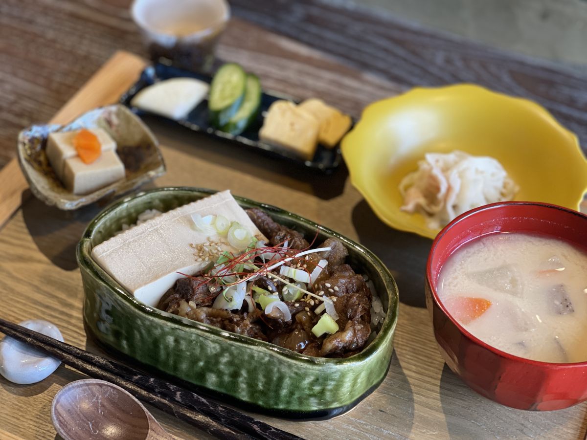 メインの「陶京和牛すじ重」は、黒毛和牛の牛すじを秘伝のタレでしっかりと煮込んだこだわりの一品。牛すじは口の中でホロホロッと崩れるほど軟らかく、しっかりタレが染み込んでいるのでご飯が進みます。甘みのある豆腐とのバランスもよく、最初から最後まで大満足のランチでした。