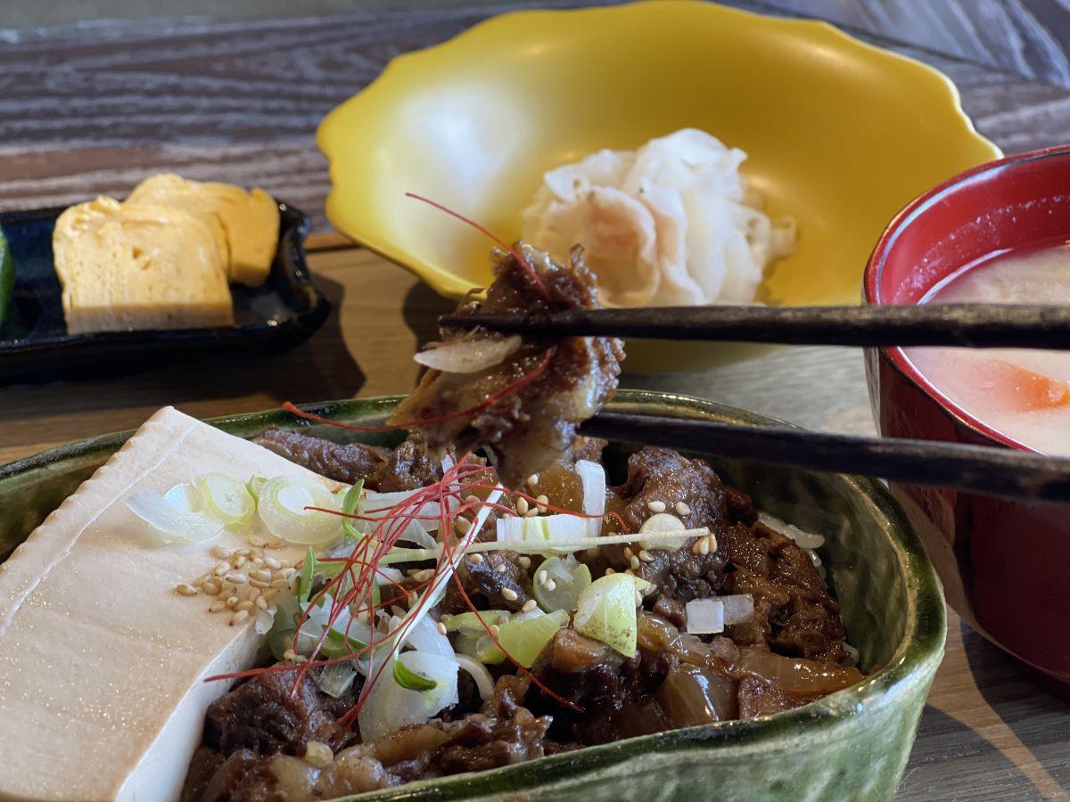 陶芸が終わったらお待ちかねのランチタイム。ランチは「陶京和牛すじ重」と「陶京めんたい重」から選ぶことができ、今回は「陶京和牛すじ重」をチョイス。