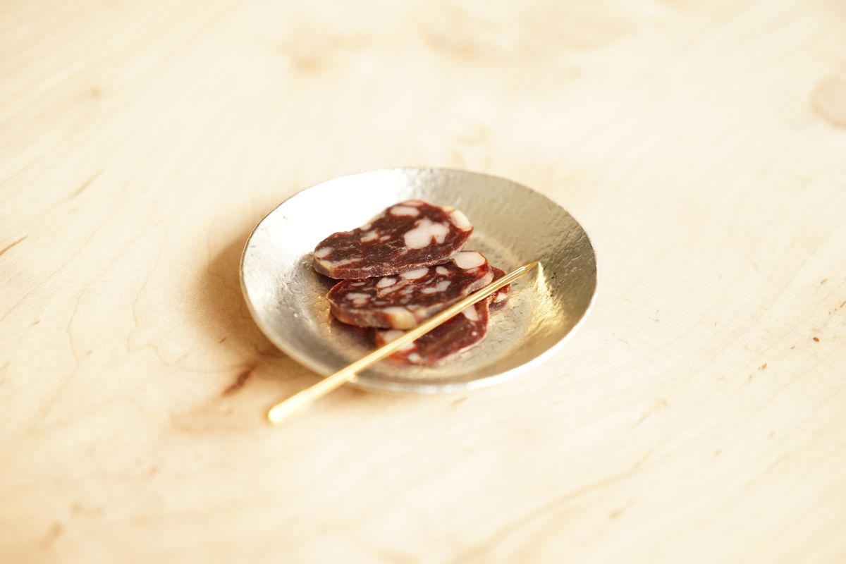 ここで一旦箸休め。「エゾシカのサラミ」をつまむと、口の中に残るチョコレートの甘さの余韻を、キュッと引き締めてくれるような肉のうま味と塩気を感じ、味覚がリセットされた気分になります。ここからコースは後半へ。