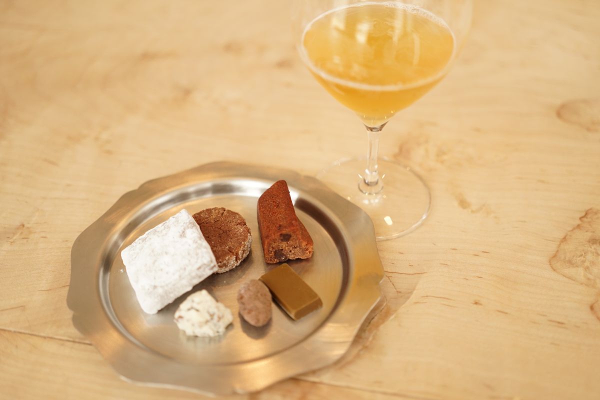 昨年9月にオープンした「Patisserie Minimal 祖師ヶ谷大蔵」ではシグネチャー商品として、さまざまな焼き菓子やケーキなどの生菓子を販売していますが、麻布台ヒルズの店舗では人気商品の「チョコレートクッキー缶」や「チョコレートフィナンシェ」などの一部を、食べやすいひと口サイズで提供。クラフトビールとのペアリングを楽しめます。