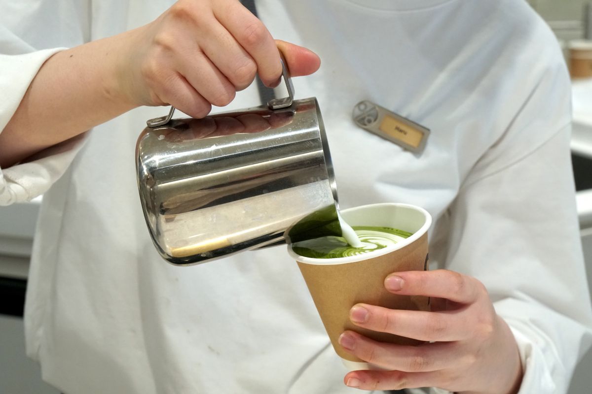 ホットドリンクを注文すると、店員さんが目の前でラテアートを披露してくれます。どんな模様が描かれているのか、ドキドキしながら完成を待ちます。