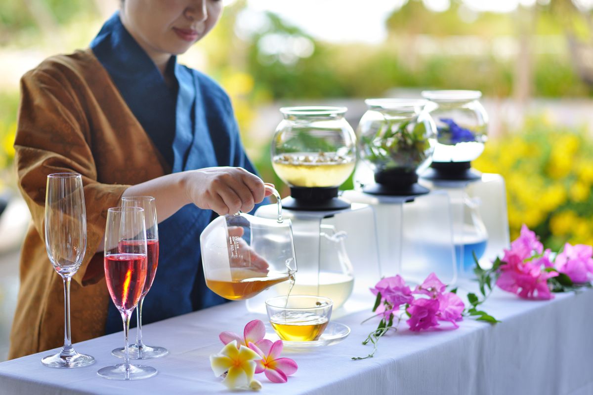 さらに、星のや沖縄のスタッフから、お茶やお菓⼦にまつわる琉球王国の話を聞くこともできます。