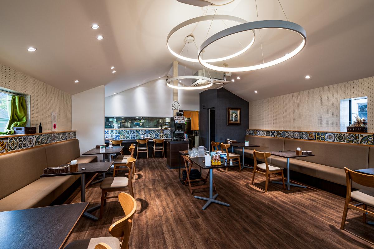 店内は、まるでカフェのようなカジュアルで開放的な雰囲気。ゆったりと過ごせるテーブル席や、窓から陽が差し込むカウンター席など、居心地の良い空間となっています。