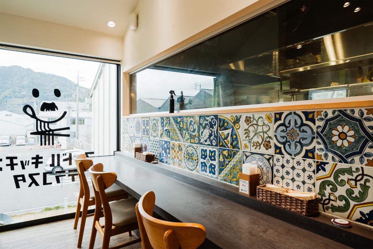 店内で一際目を引く鮮やかなタイルは、オーナーの寺田さんがイタリアから取り寄せたもの。国内にいながらも、ヨーロッパの風を感じるかのようです。