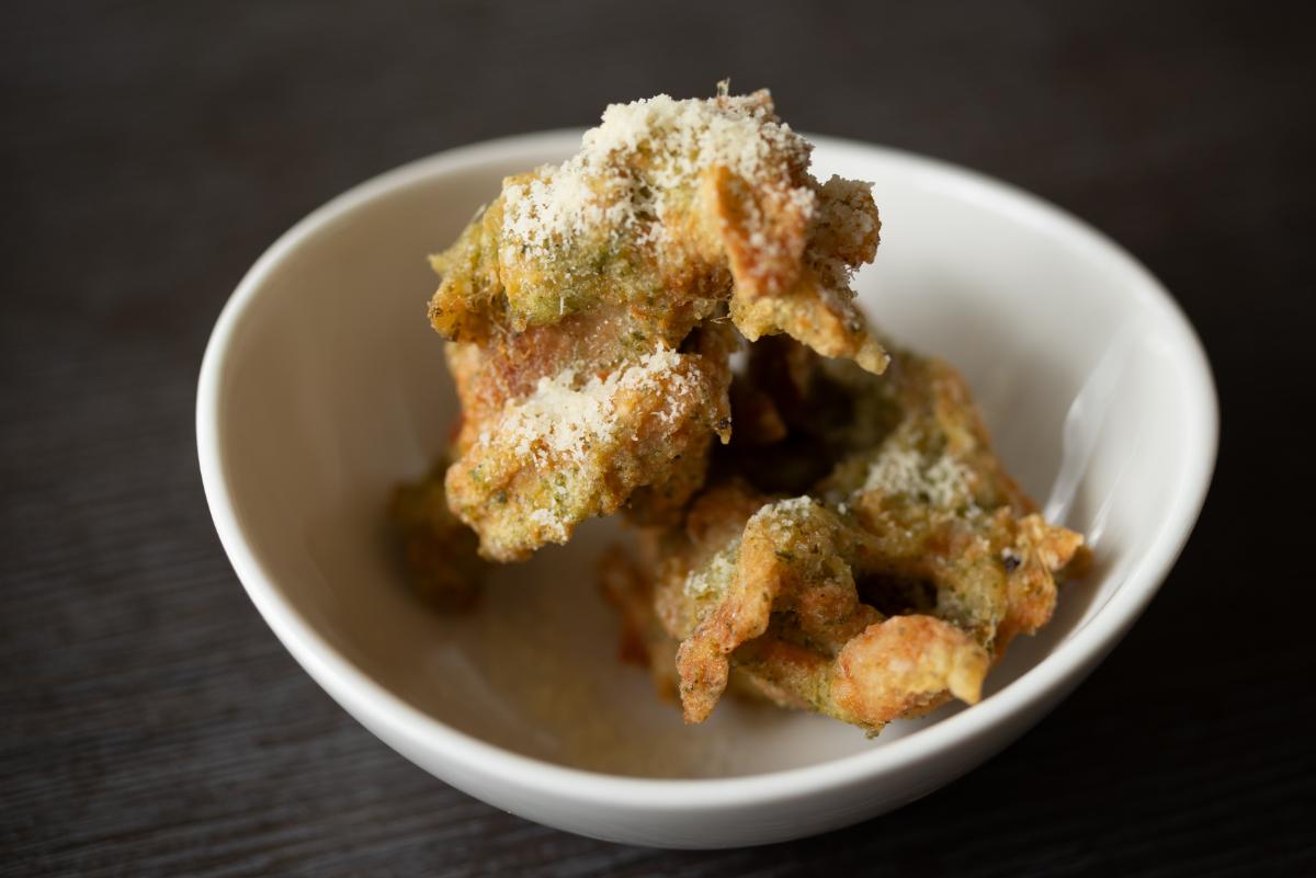 バジルペーストで下味を付けた唐揚げは、静岡県産の銘柄鶏「地養鶏」を使用。チーズをまとった唐揚げはジューシーで、いくつでも食べることができそうです。