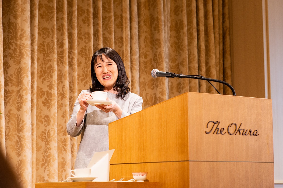 藤枝氏には、基本的なテーブルマナーから、セイボリーやスコーンの美しい食べ方、さらにはアフタヌーンティーの歴史まで、幅広い内容をお話いただきました。とても興味深く、そしてすぐに実践できるものがいっぱい!
