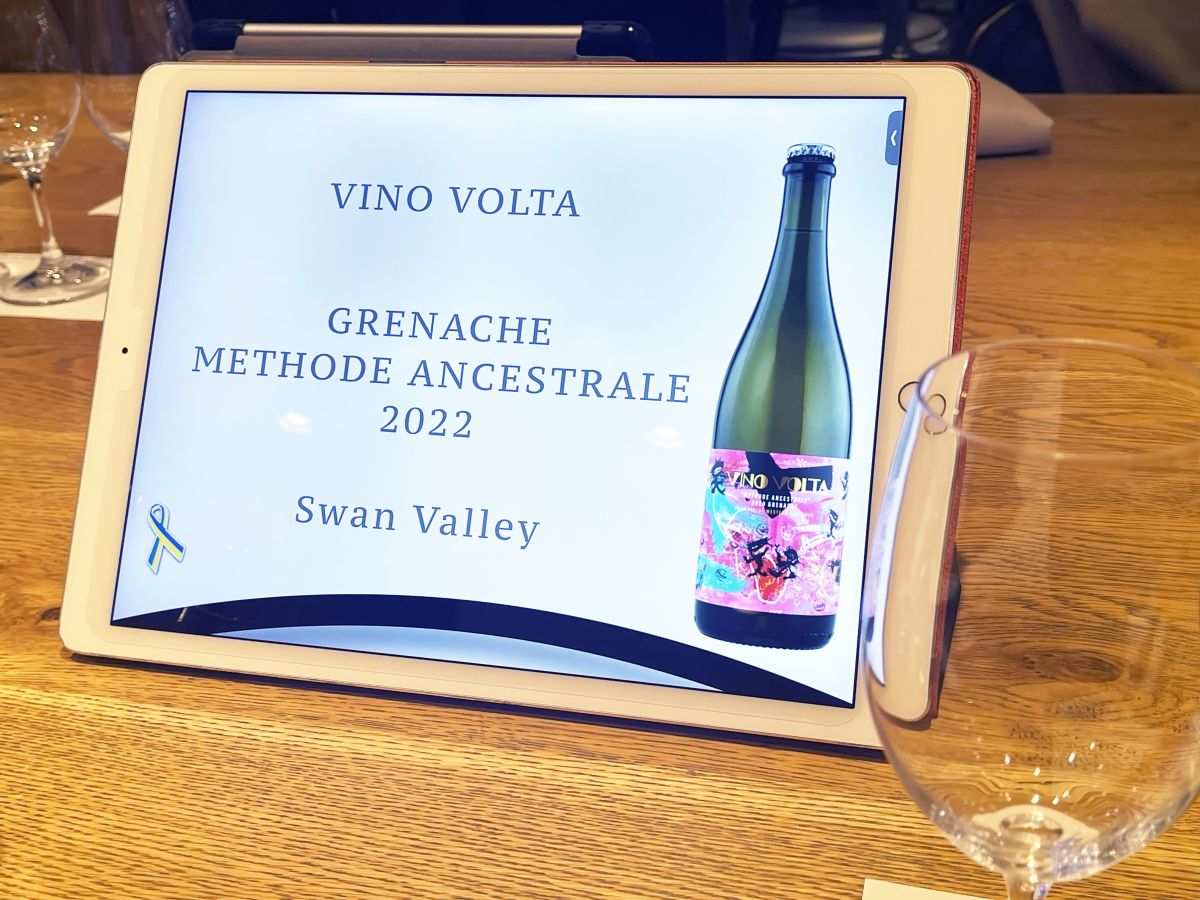 ワインやワイナリーについての紹介が終わったら、お待ちかねの試飲タイム。写真のワインはフルーティーな味わいの「Methode Ancestrale Grenache 2022」。
