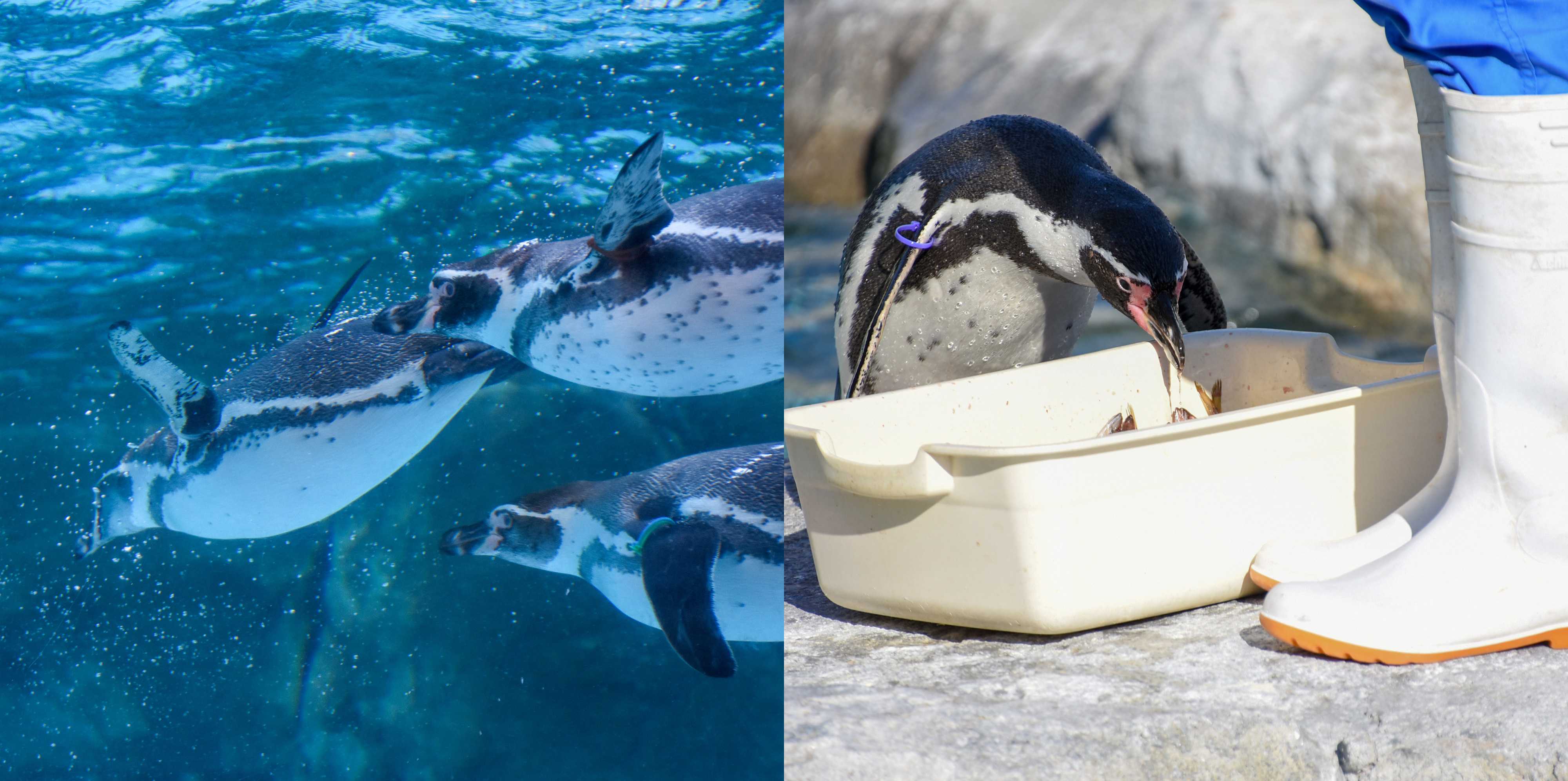 毎日10時30分と15時から行われる「ペンギンのお食事タイム」は、水中で魚をキャッチする姿をガラス越しに見られる人気のガイド。