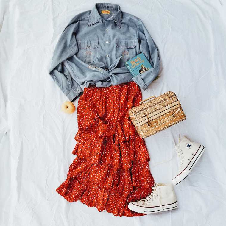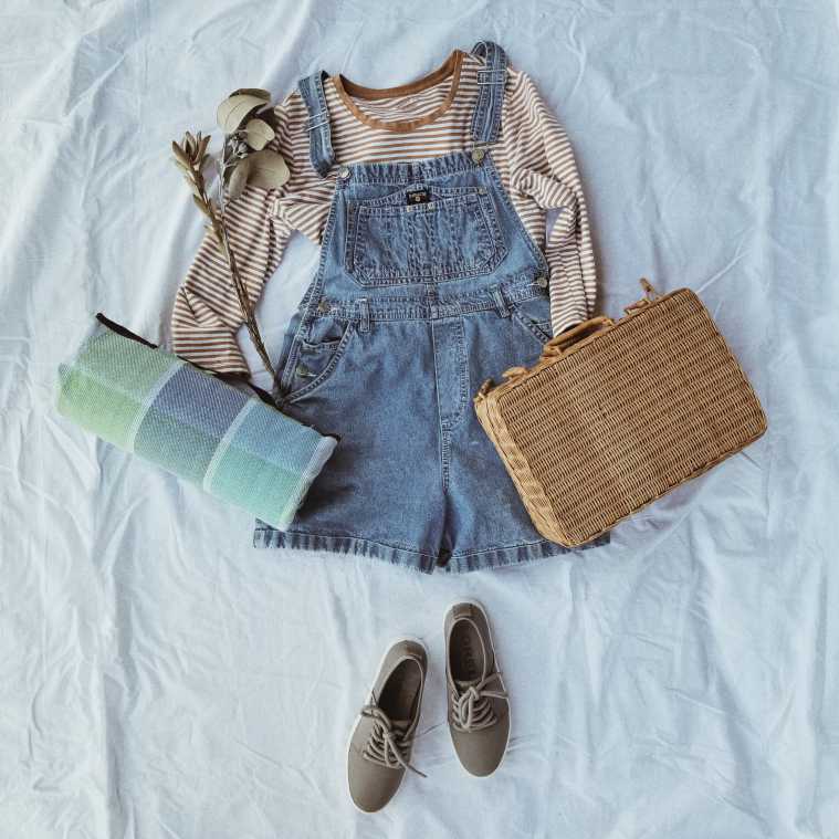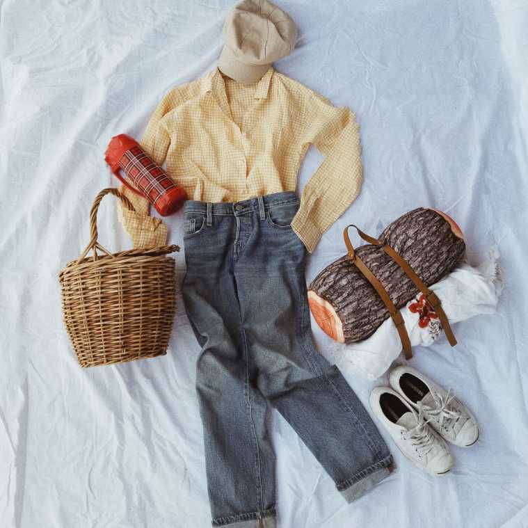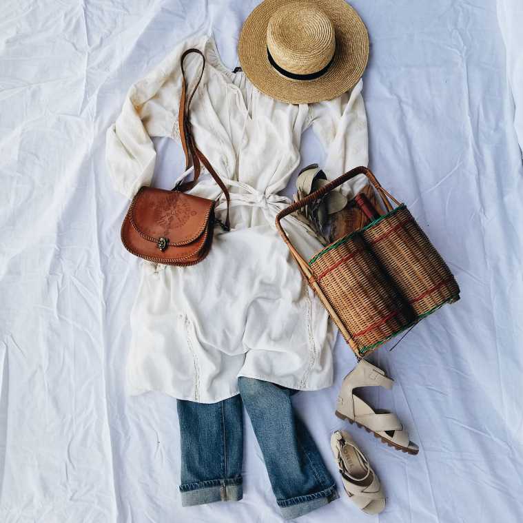 バスケットが決まったら、次は服のコーディネートです。ピクニックに相性の良いアイテムを選ぶと、コーディネートのポイントが見えてきます。