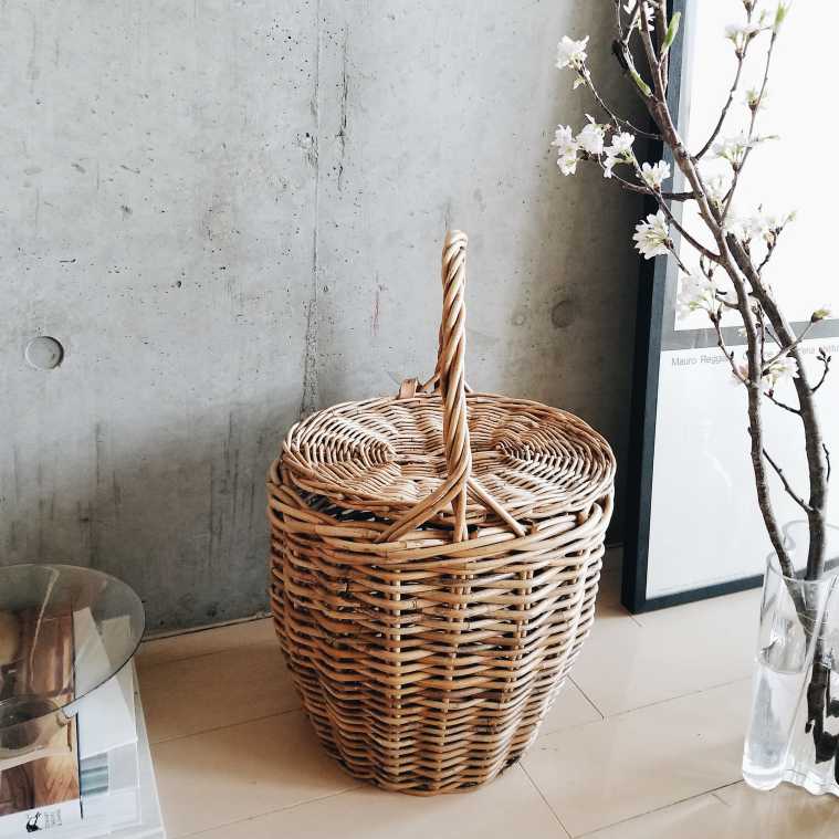 こちらの蓋つきバスケットはお弁当を持参するのに向いています。食べ物の持ち運びを重視するならこの形が一番安定している形状です。