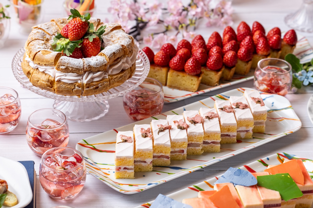 さらに、桜の開花時期にあわせ、桜のエッセンスを加えた華やかなメニューもラインアップ。香ばしく焼き上げた軽やかなシュー生地でたっぷりの桜クリームをサンドした桜パリブレストや、桜のシロップを浸み込ませた軽い食感のスポンジに桜の生クリーム重ねた桜ショートケーキ、みずみずしいイチゴを詰め込んだ桜ゼリーなど、目でも舌でも春の訪れを感じられるスイーツが揃います。