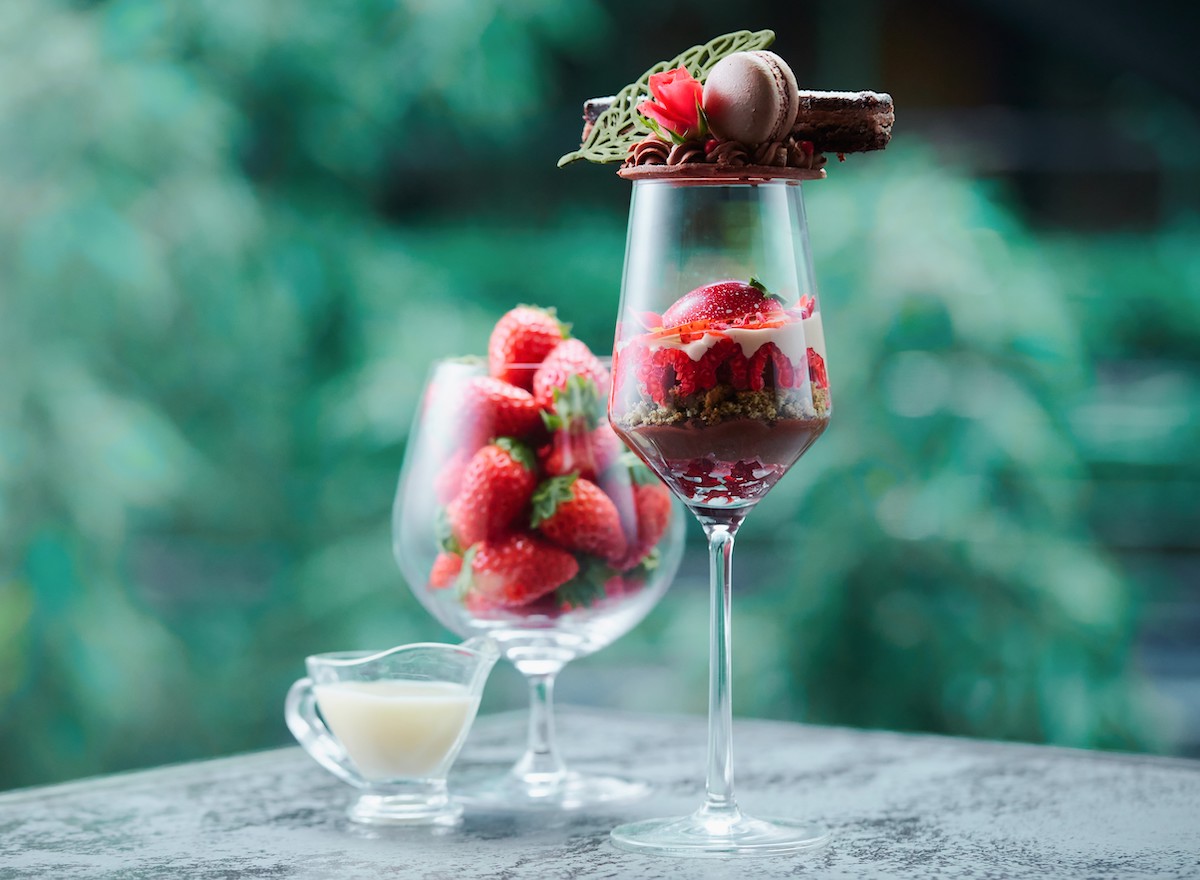 「TEA AND BAR」では、イチゴのアフタヌーンティー以外にもイチゴメニュー「まんぷくいちごのショコラパルフェ」が登場。バレンタインシーズンにもぴったりなショコラをあしらった華やかなパルフェです。