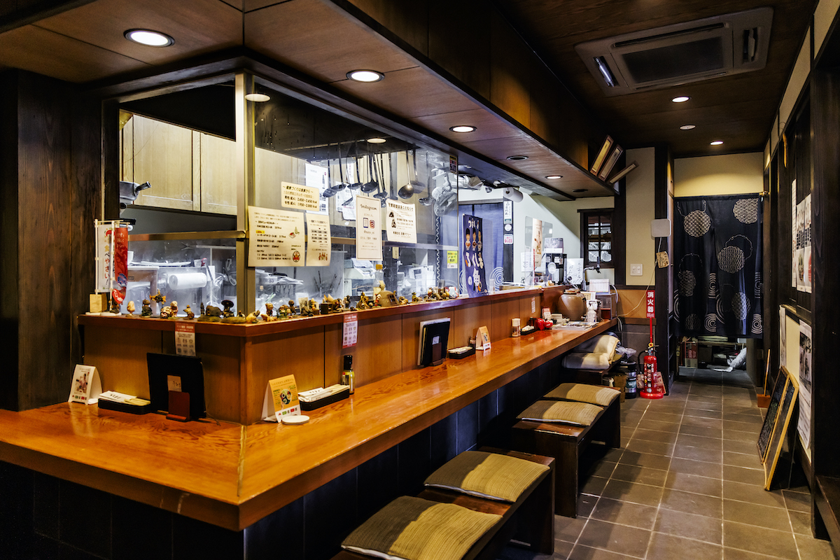 JR常磐線鹿島駅から徒歩約10分の「美晴湯旅館 万葉亭」は、カウンターと座敷の計46席の和風居酒屋。浜通り地区の漁港で水揚げされた新鮮な魚介や東北の海の幸、福島県の地鶏、福島牛、地元の旬野菜などの食材を生かし、多彩な料理を提供しています。日本酒の品揃えも豊富で、約20年来の付き合いの酒屋さんから珍しいお酒が仕入れられるのだとか。