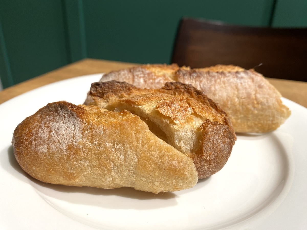 「バケット」は国産小麦キタノカオリを使ったフランスパン。湯種を使っているので、外のカリッ、中のモチッとしたふたつの絶妙な食感を楽しむことができます。