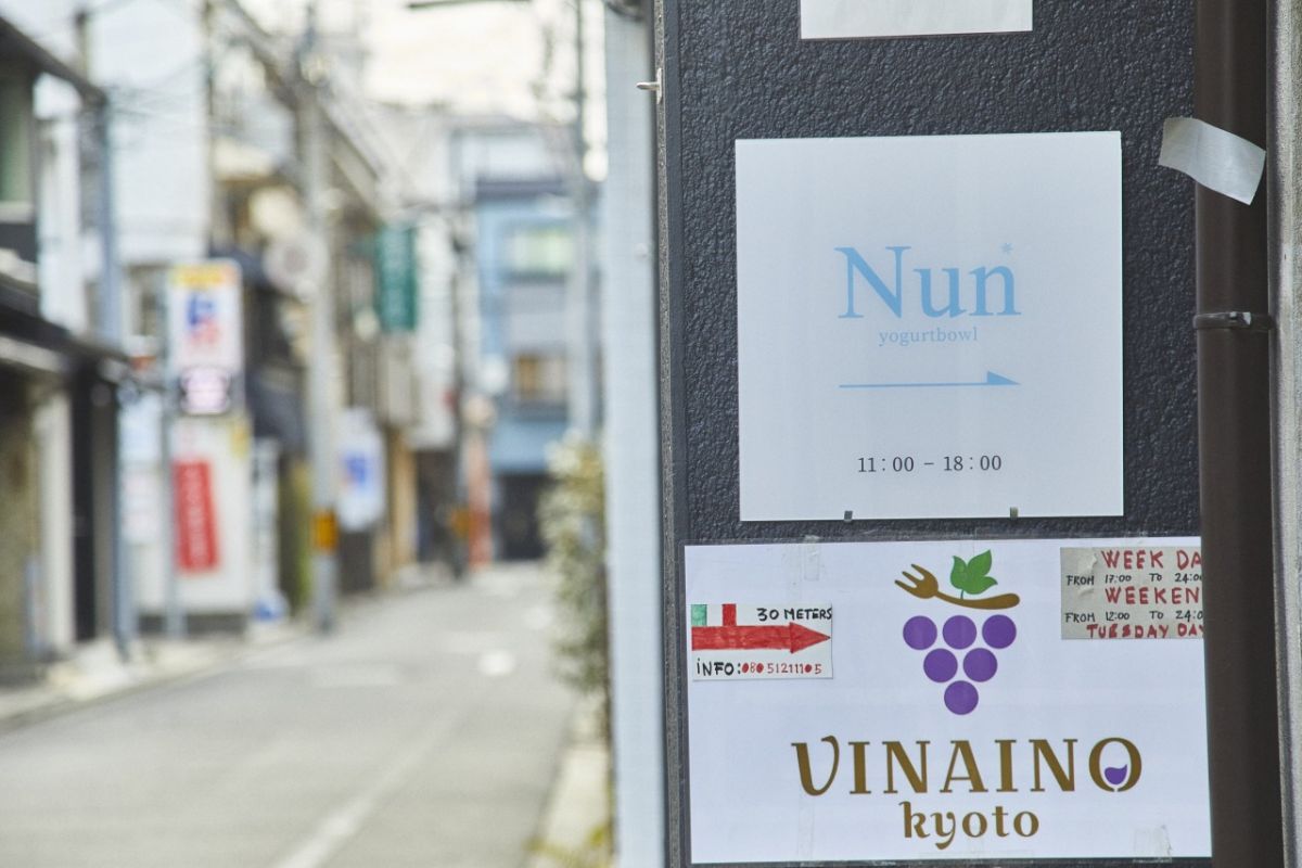 京都の繁華街への入り口、阪急京都河原町駅から徒歩5分と聞けば、とってもにぎやかでわかりやすい場所を想像すると思いますが、今回目指すギリシャヨーグルトの専門店「Nun」があるのは、知らずに通れば、見逃す確率大の路地裏。