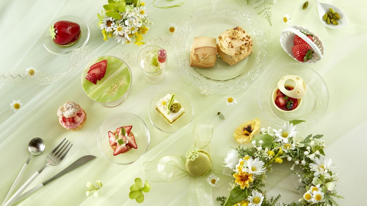 3月よりスタートする「Strawberry Afternoon Tea ~Spring Garden~」は、「スプリングガーデン」をテーマに、ライトグリーン・レッド・ホワイトのカラーで統一し、春に咲き誇る花や新芽をイメージしたアフタヌーンティーです。