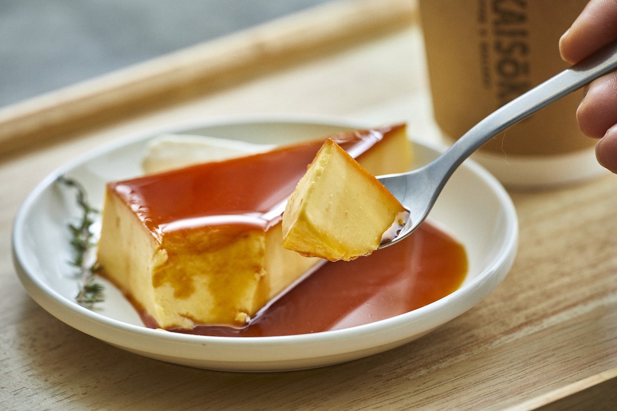 カフェのメニューはシンプルで、スイーツは「名物プリン」「バスクチーズケーキ」「ティラミス」の3種類。なかでも一番よく出るのは、三角形の「名物プリン」です。