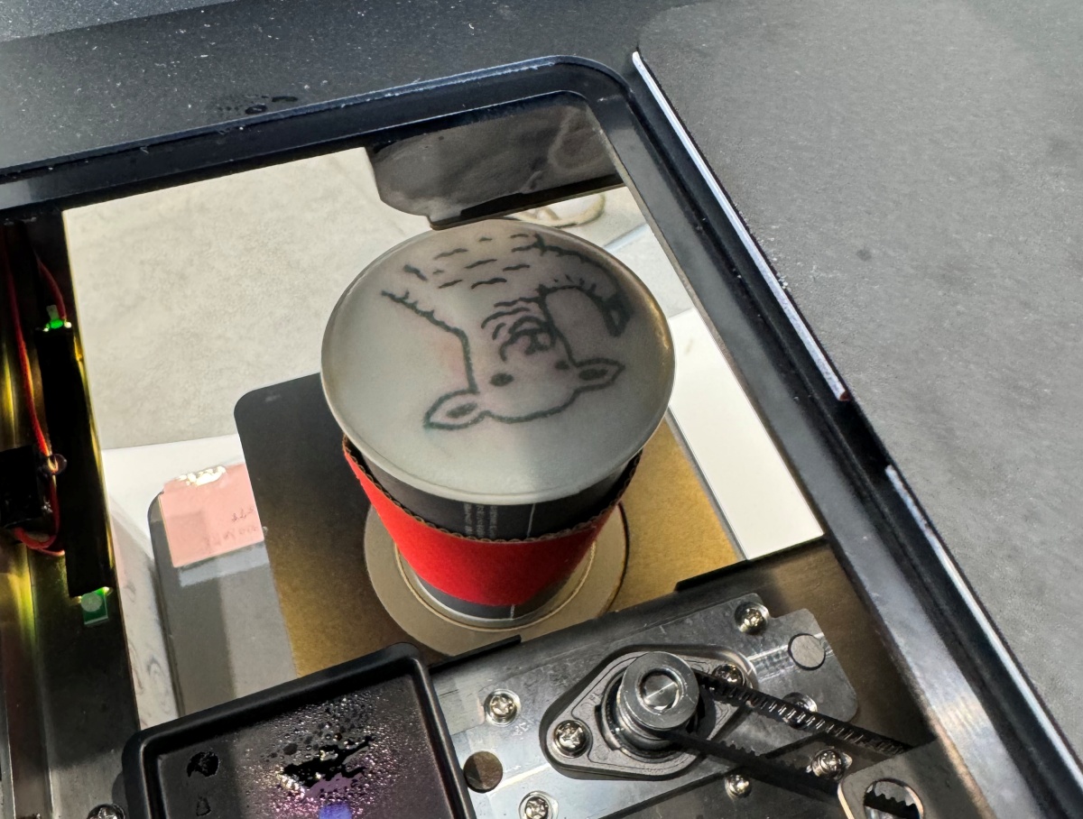 オーダーごとに豆を挽き、丁寧に入れたカフェラテの表面に、専用プリンターでアートを施していきます。