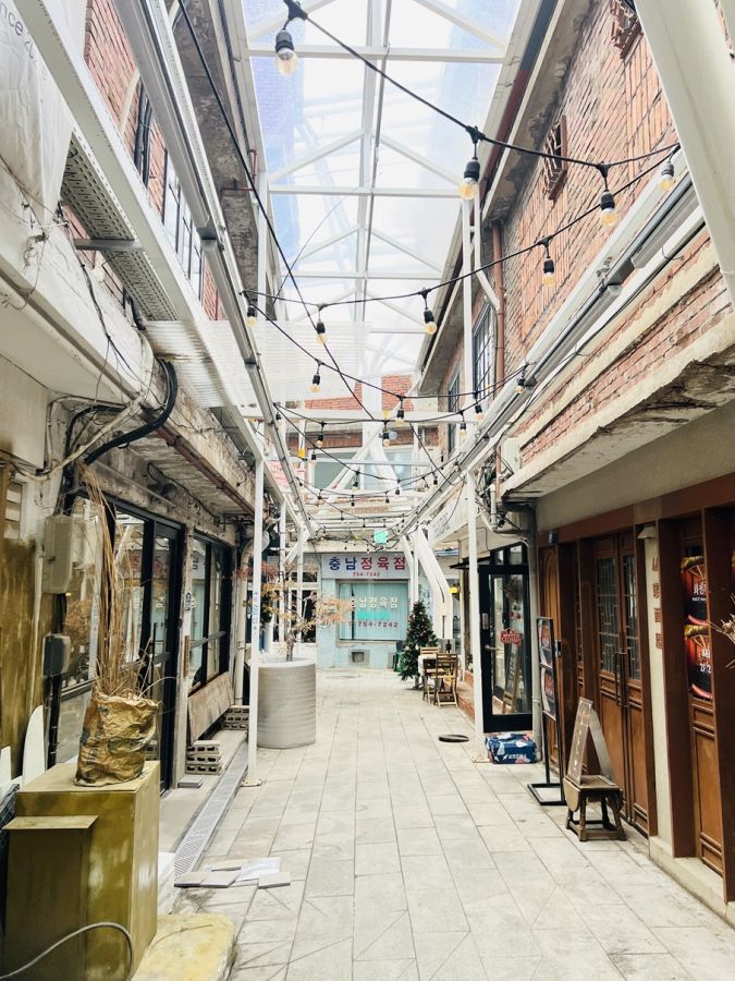 朝鮮戦争後、北朝鮮からの避難民が集まって住む集落として発展し、その後「解放村」とよばれ始めたのがこの場所の始まりです。繁華街からはアクセスしにくいことから静かな住宅地でしたが、数年前に都市再生エリアに指定され、路地裏などの住宅がカフェやショップなどに生まれ変わり、解放村の真ん中にある新興(シンフン)市場を中心にオシャレなエリアとして再注目を集め始めています。