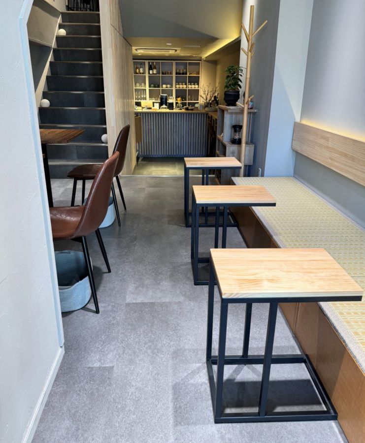 畳のベンチシートやテーブル席のほか、ひとりでも気兼ねなくくつろげるカウンター席も用意されています。
