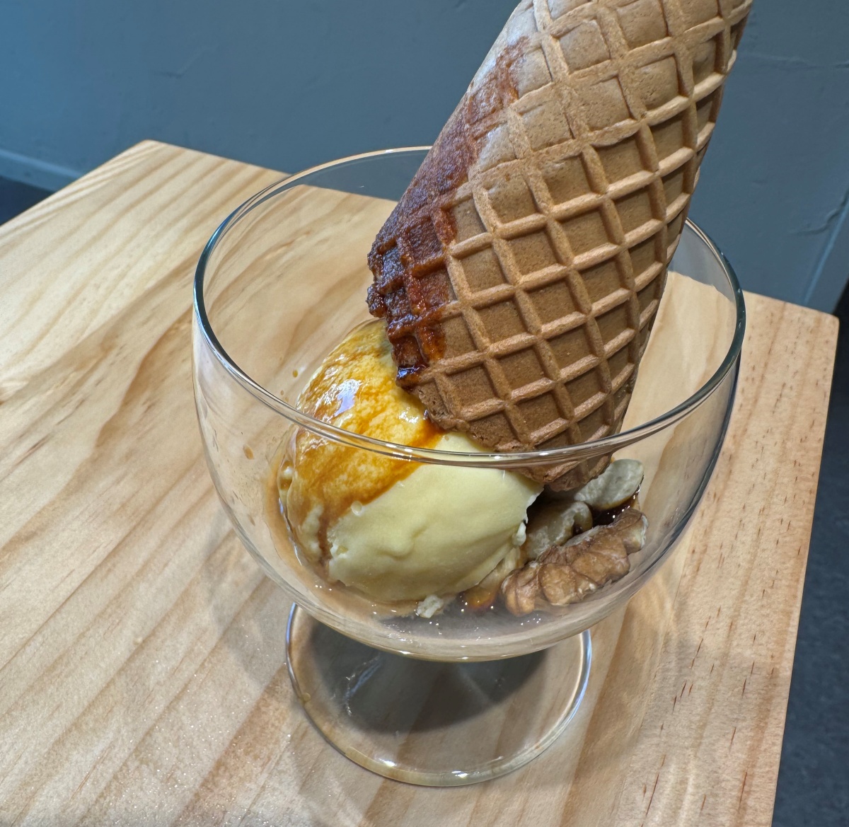 甘~く濃厚なアイスとしっかり苦味のあるエスプレッソが溶け合い、絶妙な味わい。トッピングのコーンや、アイスの下に隠れたナッツの香ばしさ、ザクザクとした食感も加わって、お腹がいっぱいでもぺろっと食べられてしまいます。