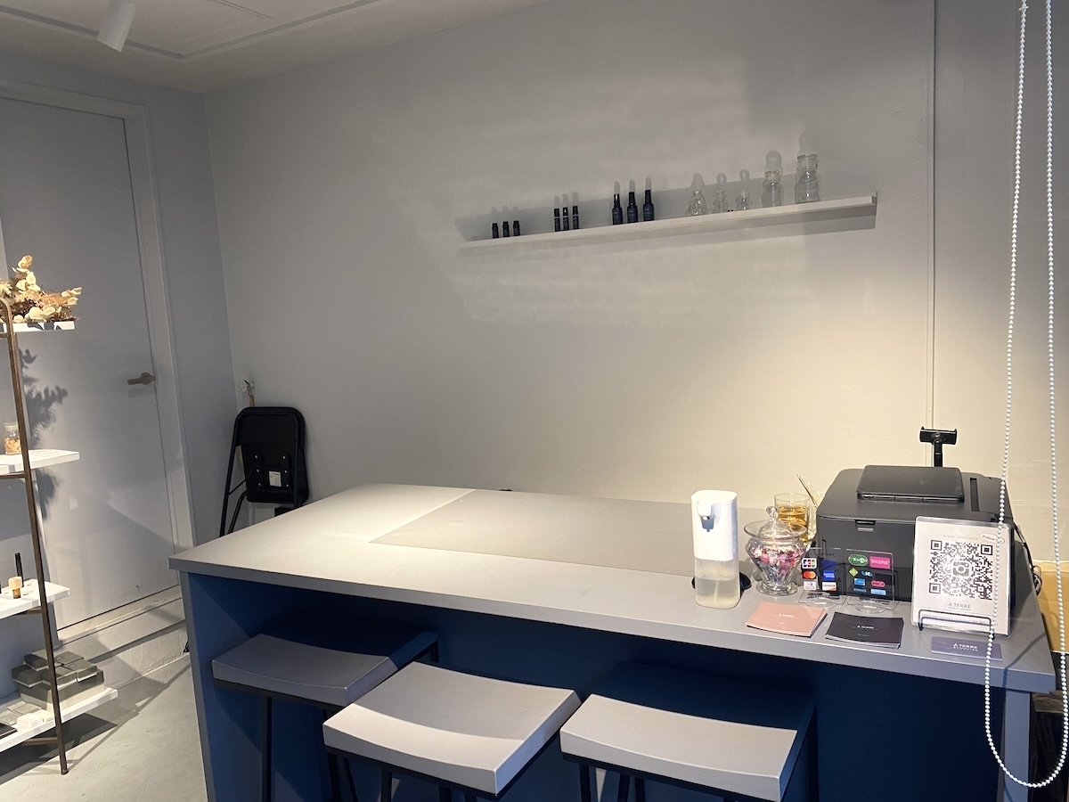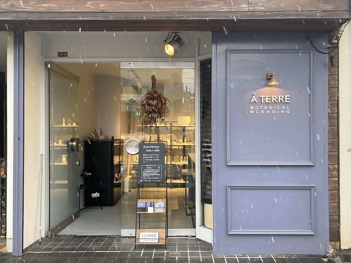 そんな悩みを改善しようと今回訪れたのは、京王井の頭線西永福駅から徒歩2分のところにある「A TERRE」です。「A TERRE」は、眠りやすくしたり、代謝アップを助けてくれるようなアロマを取り揃えている香りのブランド。身体にやさしい植物由来の天然香料だけを取り扱っているのがポイントです。